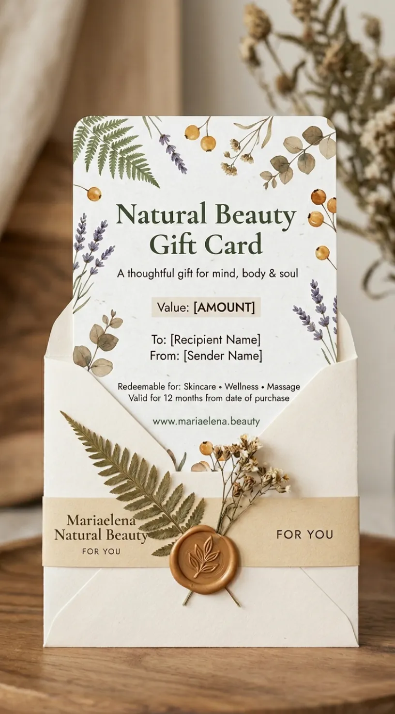 A Maria Elena gift voucher is an invitation to rest, to be cared for, and to reconnect with her own natural beauty. No wrapping needed. Just a moment she will not forget.